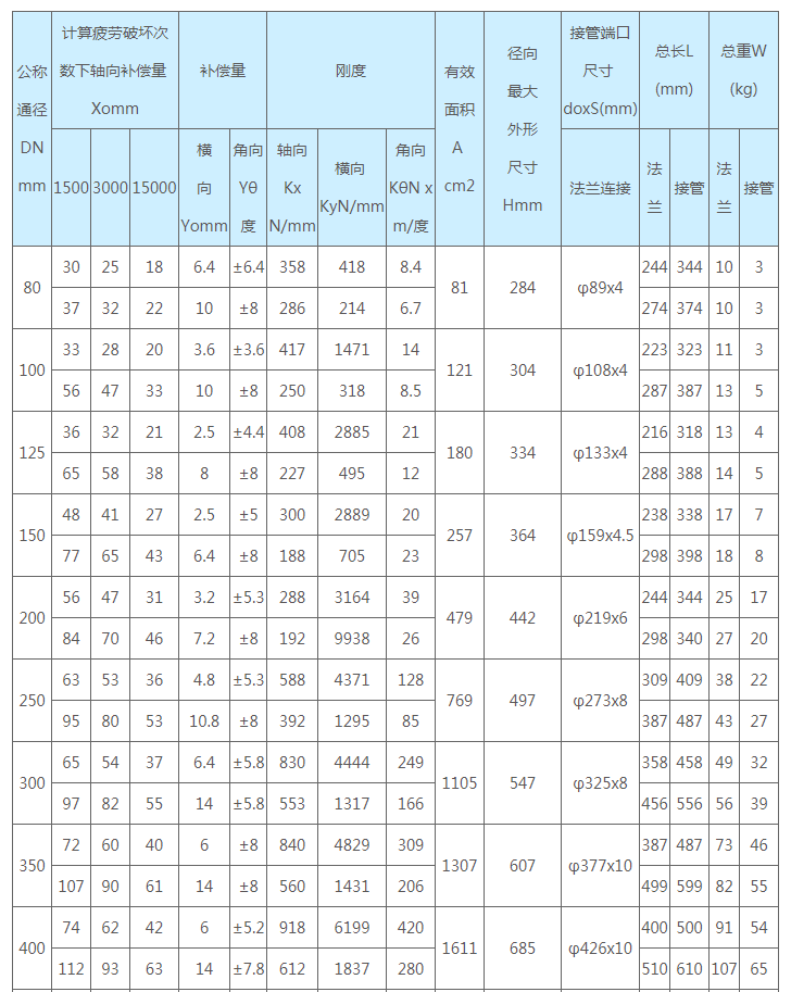 通用型波紋補(bǔ)償器技術(shù)參數(shù):公稱壓力1.0MPa