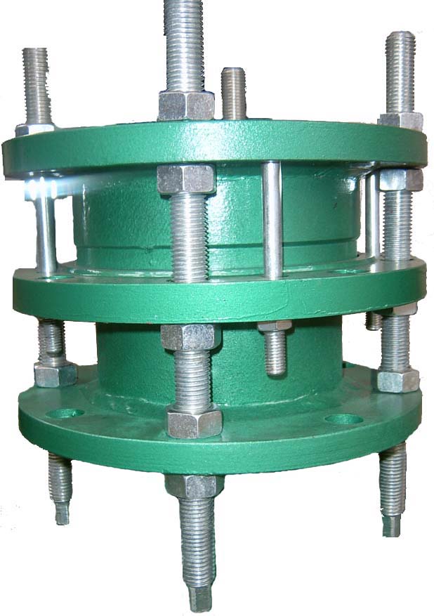 2、雙法蘭傳力接頭是由法蘭松套伸縮接頭和短管法蘭、傳力螺桿等構(gòu)件組成。雙法蘭傳力接頭能降低被連接件的壓力推力(盲板力)和補(bǔ)償管路安裝誤差,雙法蘭傳力接頭不能吸收軸向位移。雙法蘭傳力接主要用于泵、閥門等附件的松套連接。