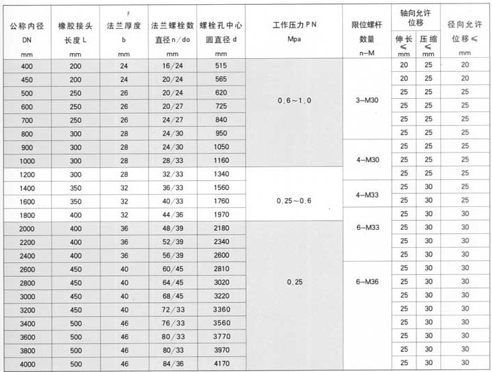 5、 當橡膠接頭在水(油)泵出口近距離或開停頻繁條件下使用時,為減少橡膠接頭長度的拉伸和壓縮過大而給泵和管道帶來的影響,應在法蘭兩端增加限位裝置!
